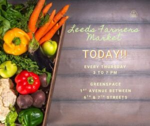 Stop by the Leeds Farmers Market this Thursday! We’ll see you on the greenspace in downtown Leeds from 3:00 until 7:00 p.m. with fresh produce, sweet treats, and more! 🛍️🌞