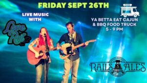 Live Music with Love Rat 7 – 10 PM, September 26th at Rails and Ales, + YA BETTA EAT CAJUN AND BBQ 5 – 9 PM!