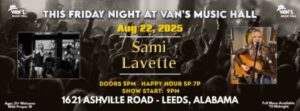 Sami Lavette is a local Alabama native and former Miss Alabama contestant. She is currently living in Nashville, and is a regular on Broadway in Nashville TN, she can turn the crowd around and then turn them wide-open!